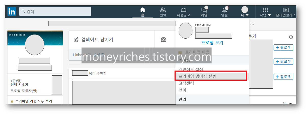 링크드인 프리미엄 해지 유료결제 멤버십 취소 탈퇴 방법